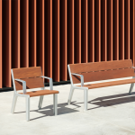 The Milou aluminium and timber bench collection combines unmatched ergonomics with contemporary design. It features a cast aluminium frame with thick wooden slats dispensing with additional finishes that could harm the environment. The spacious design is considerate to the environment as well as those that looking to rest, with a spacious backrest providing comfort and support.