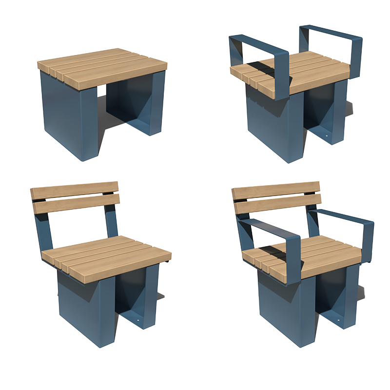 The Modulo range is a timber-centric collection featuring 45mm thick slats in a vast variety of combinations and forms. The galvanized steel legs simply provide a method of connection between the slats allowing the imagination to run wild and create a bespoke layout to suit any location. Both backrests and armrests can be incorporated at any point of the bench layout to create a unique seating aesthetic.