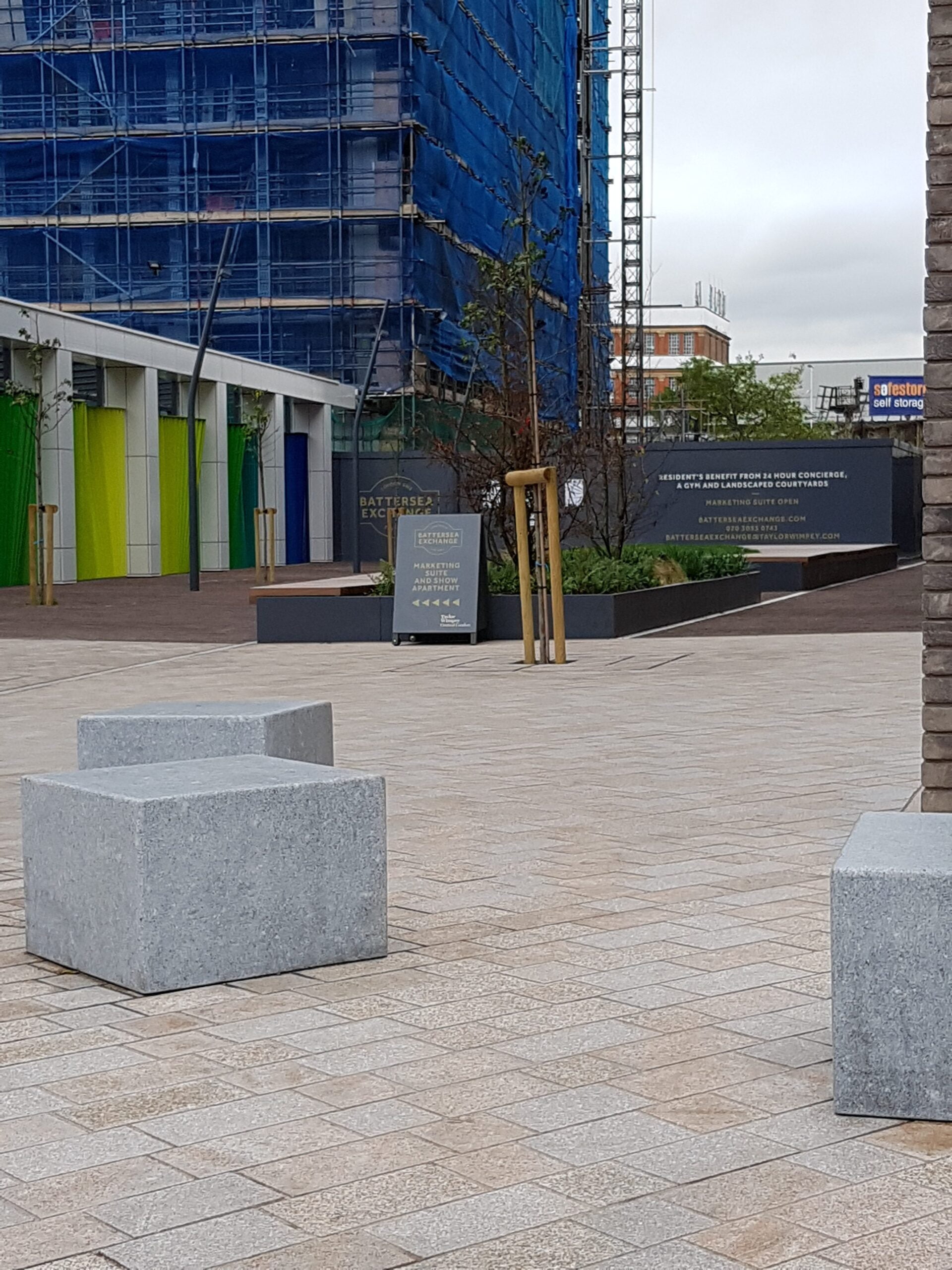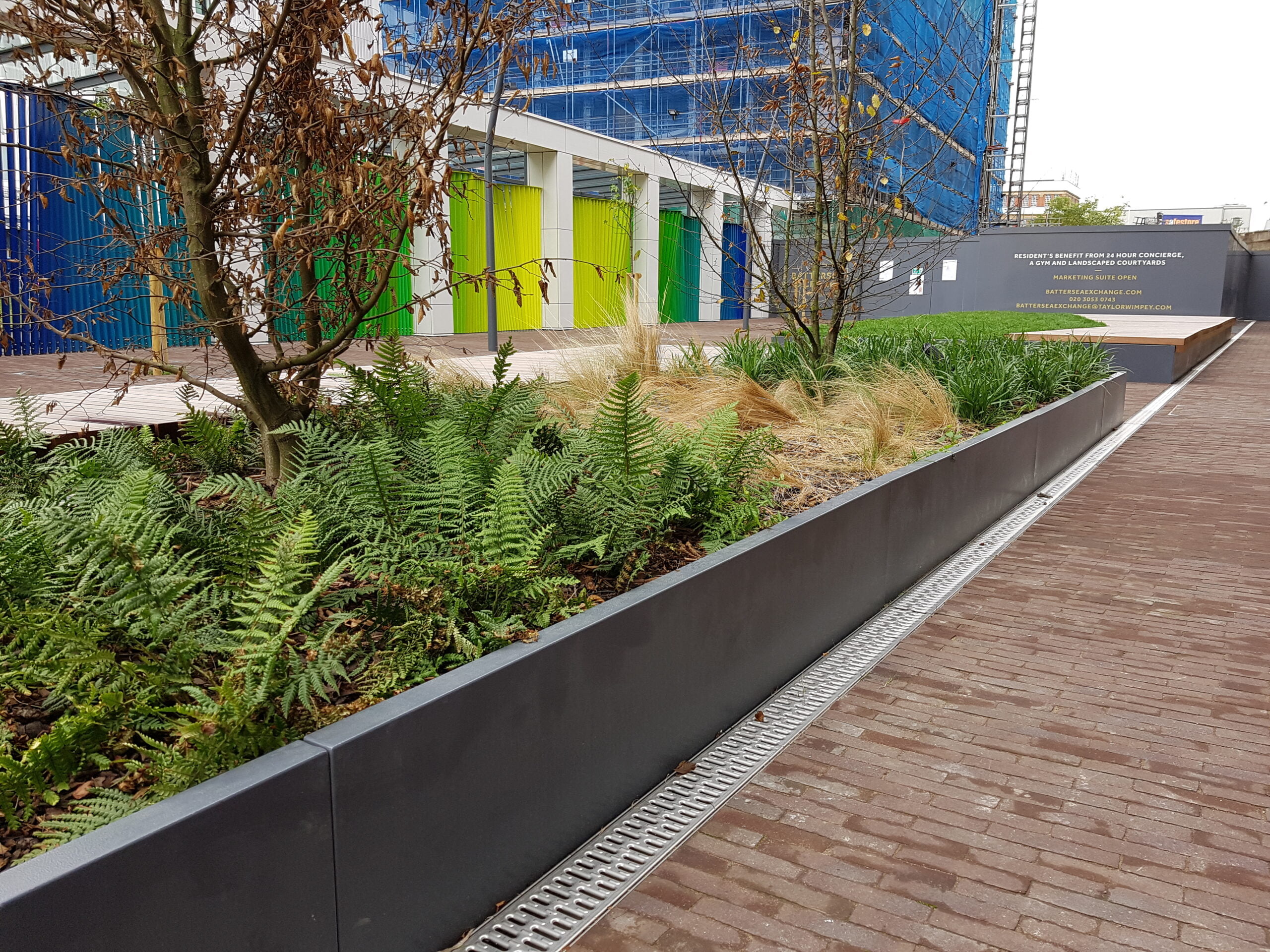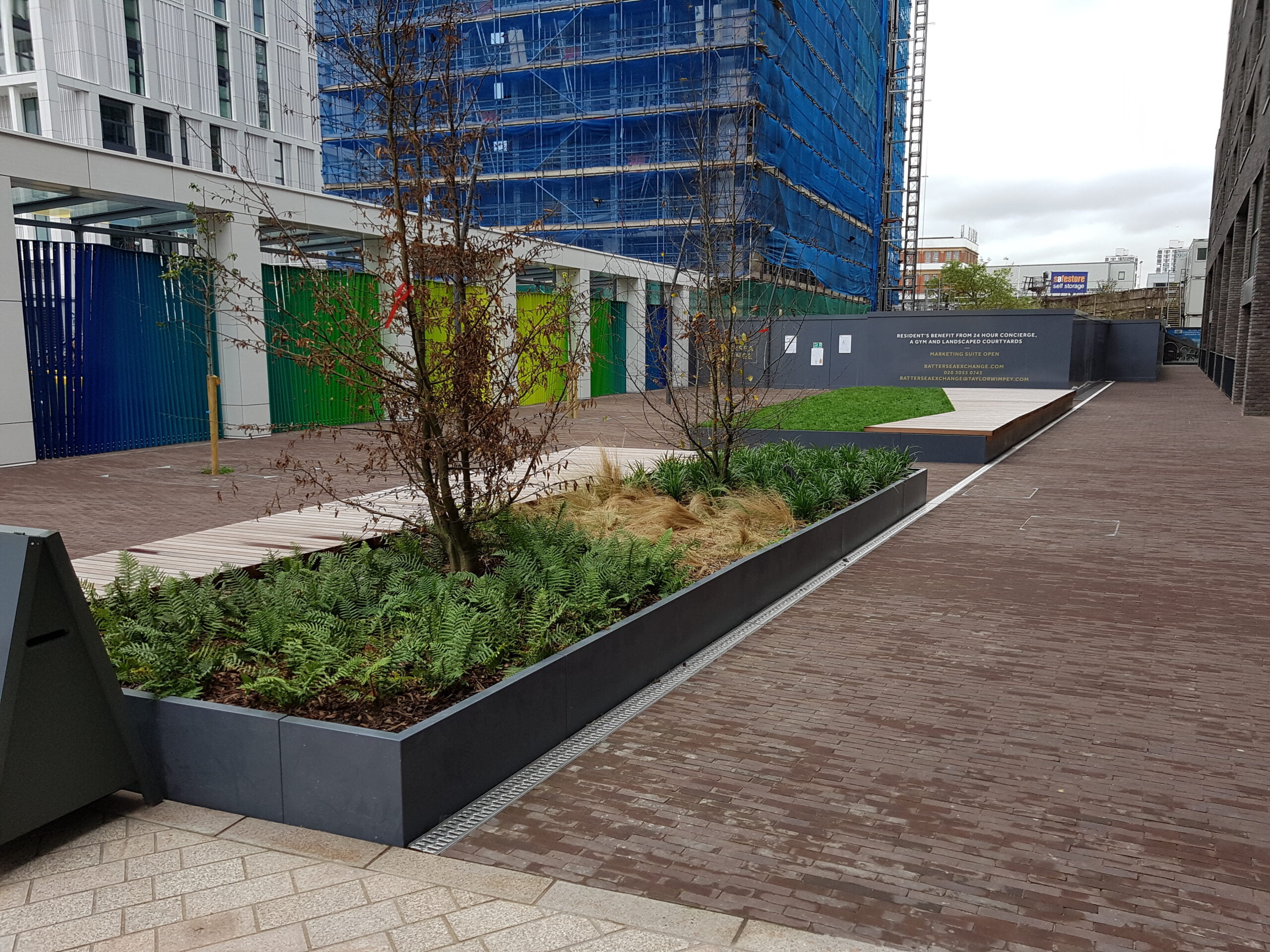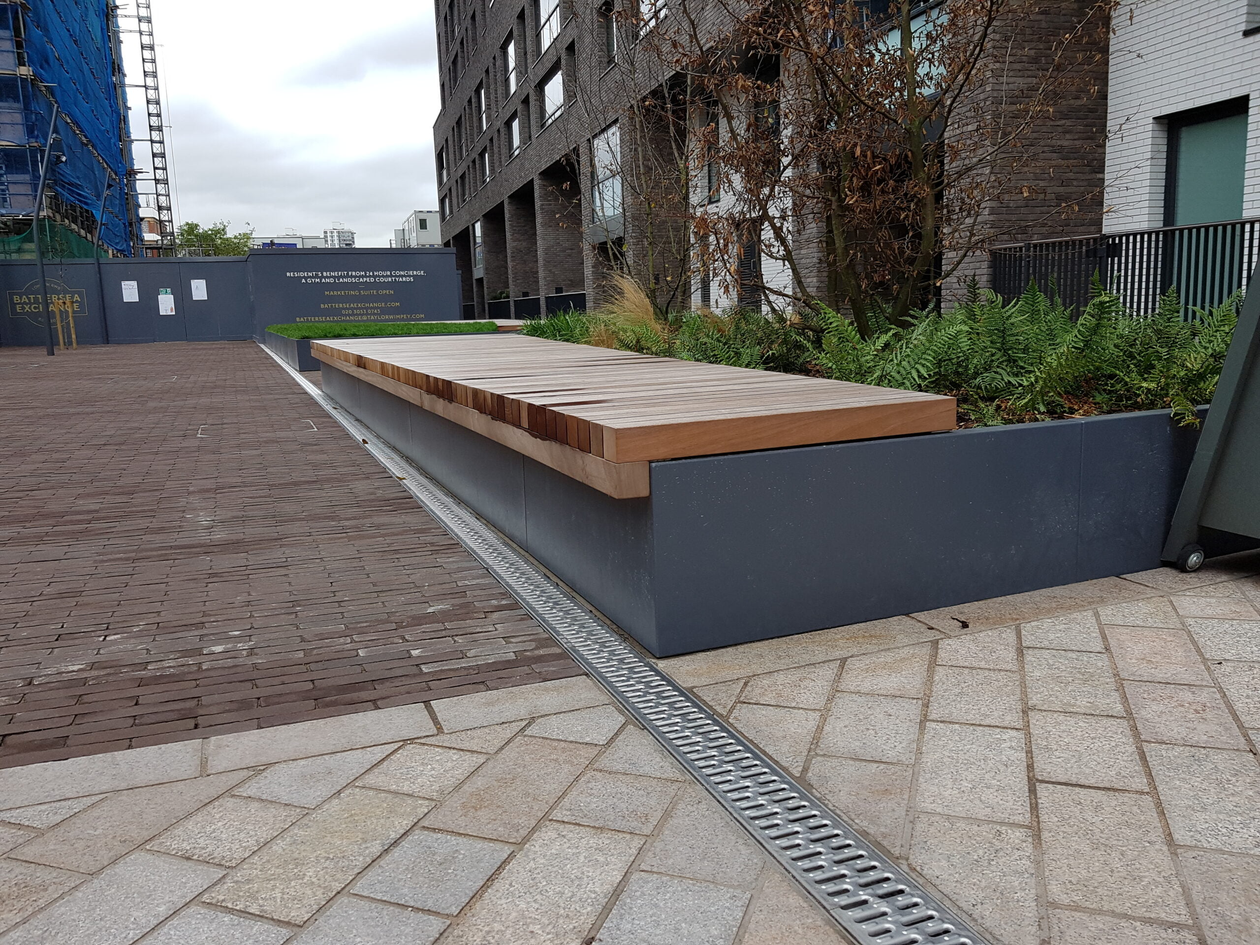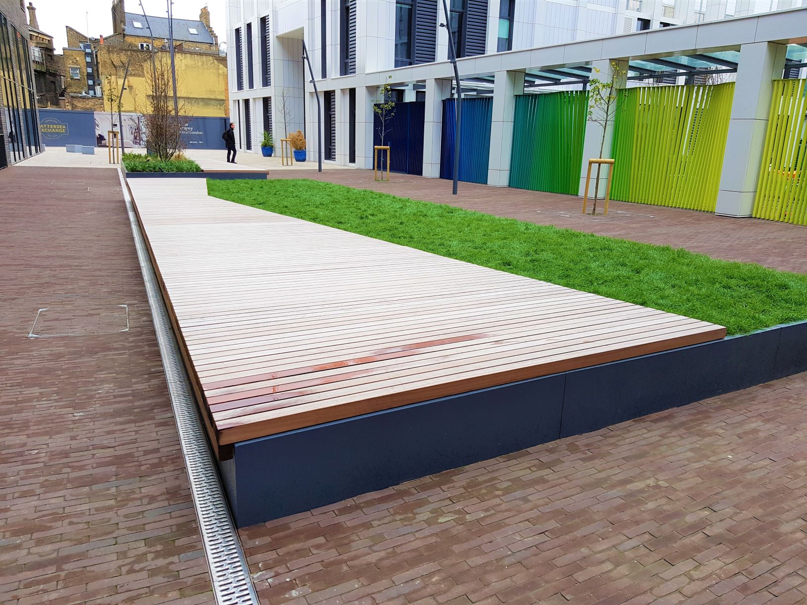 A central London project that required a range of street furniture including some large planter areas with integral seating.