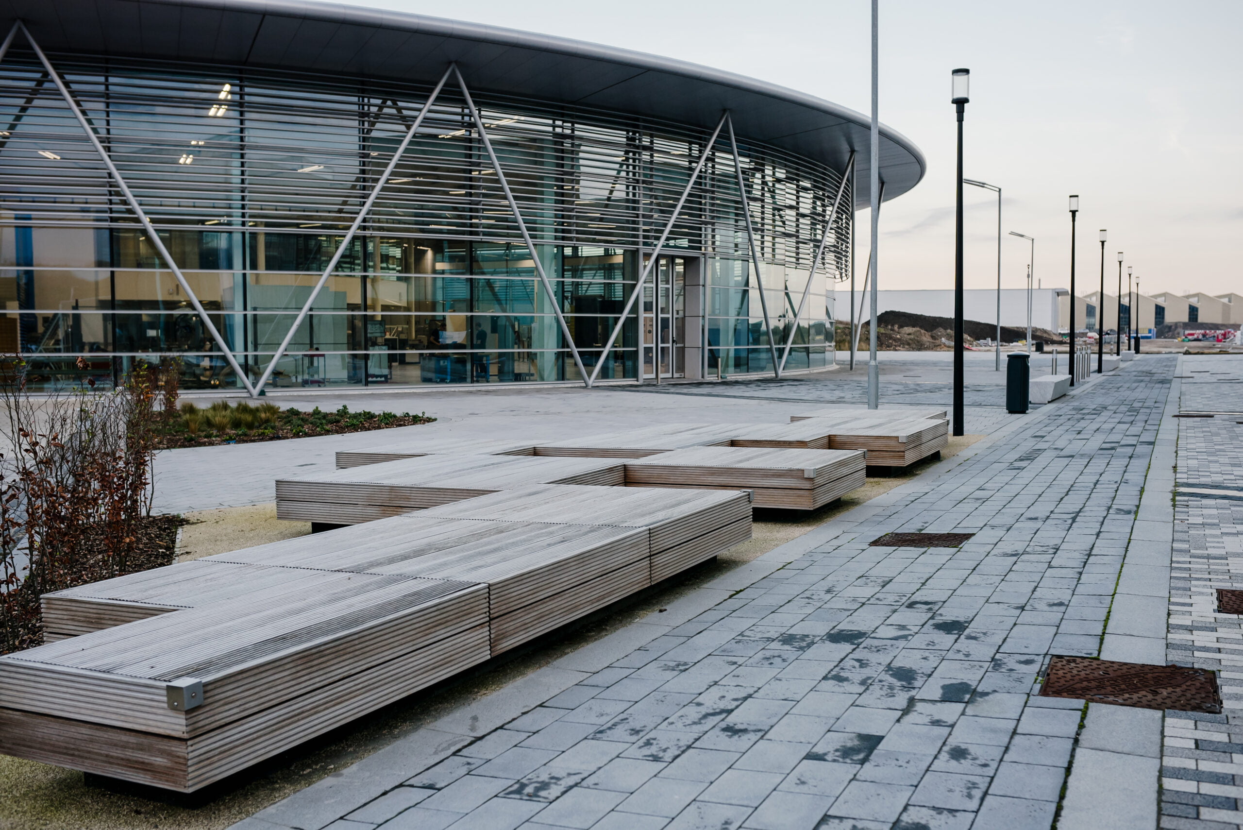 This involved producing symmetrical seating blocks to enhance an open plaza area between some new industrial buildings.