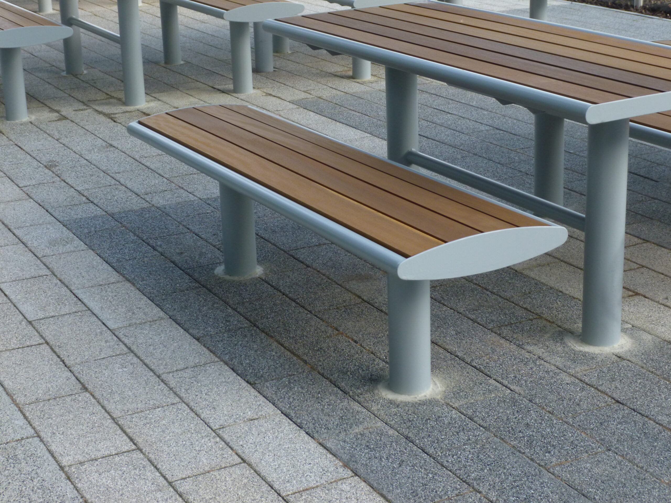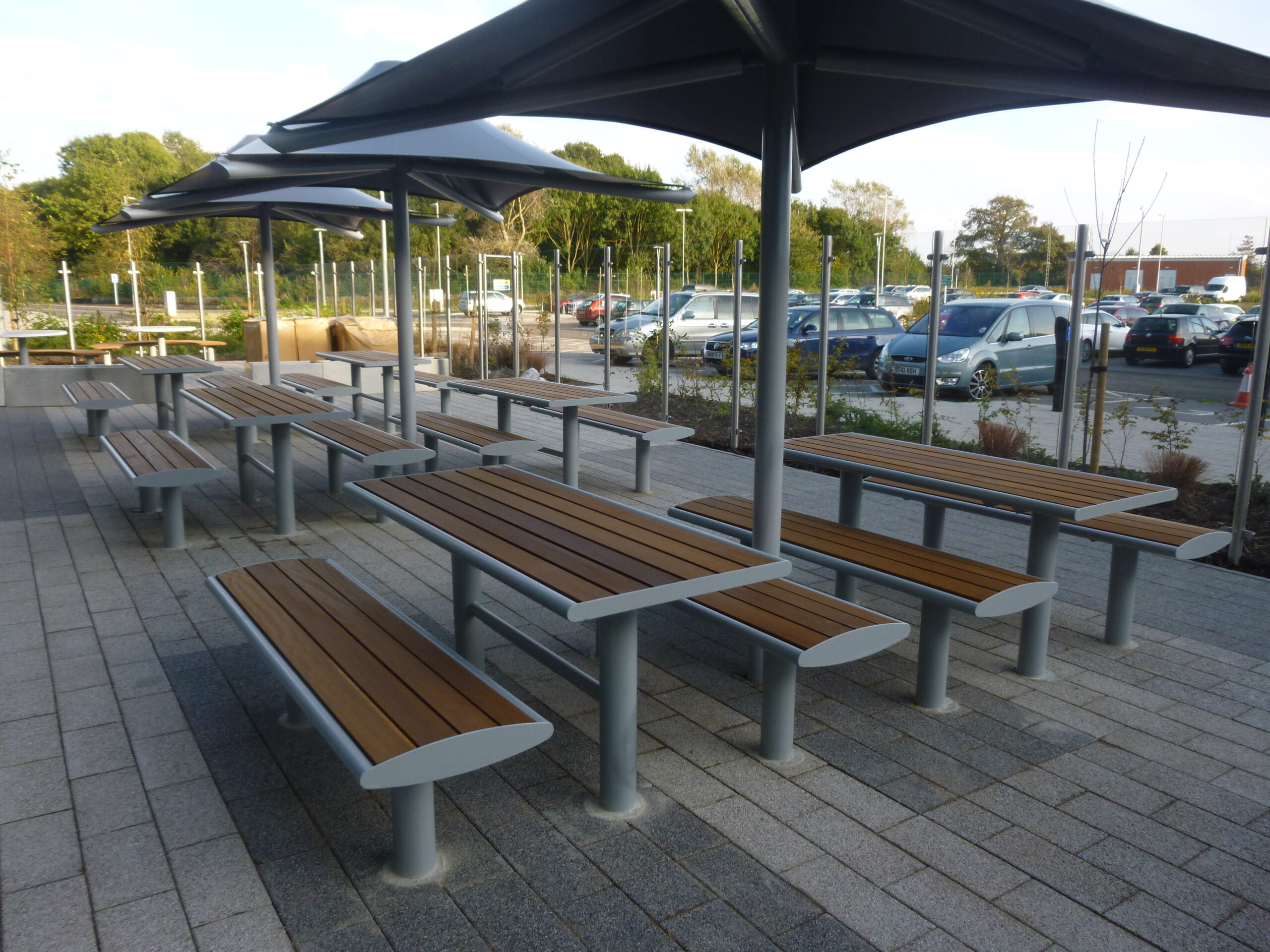 Our brief was to produce a range of furniture to create a series of external dining/break out areas for a new manufacturing plant.