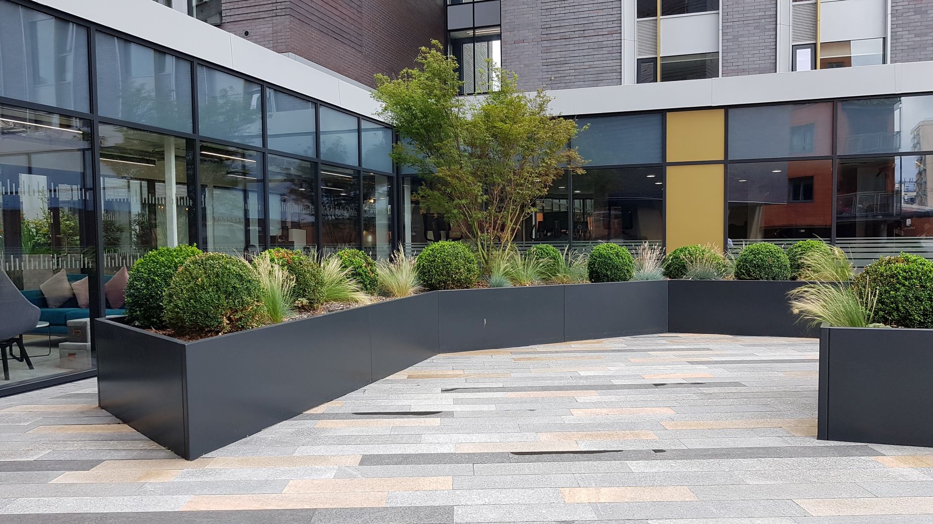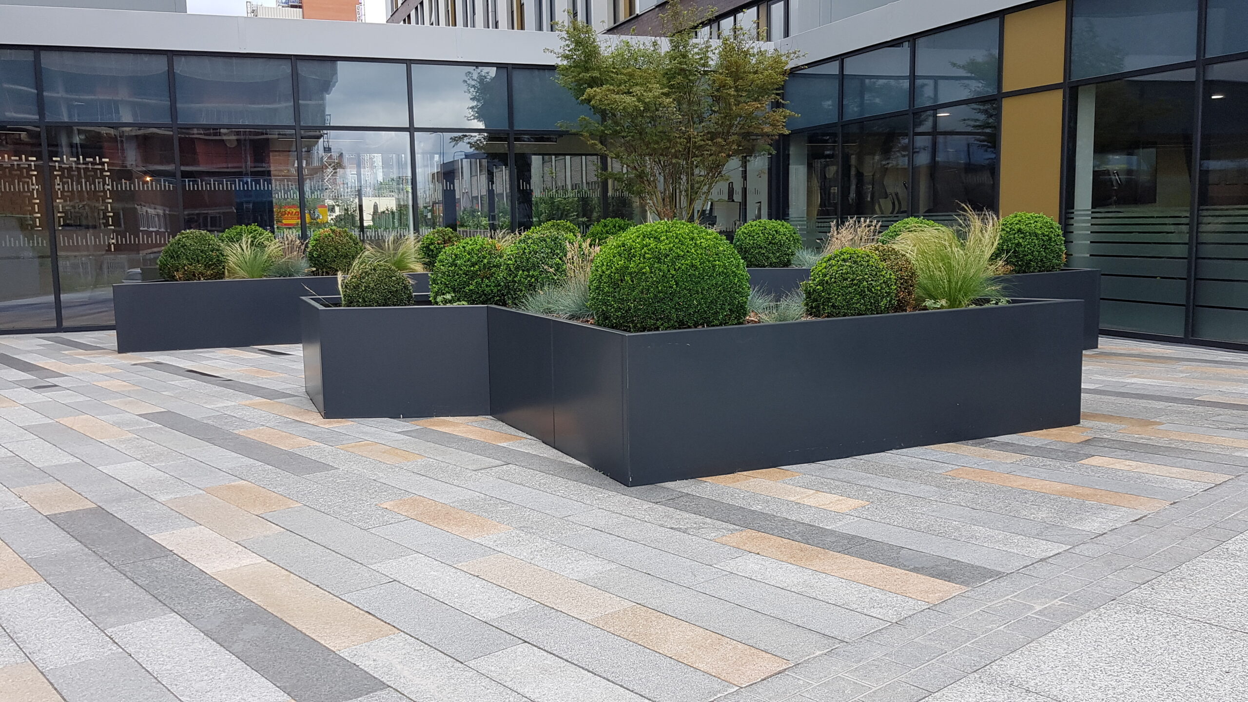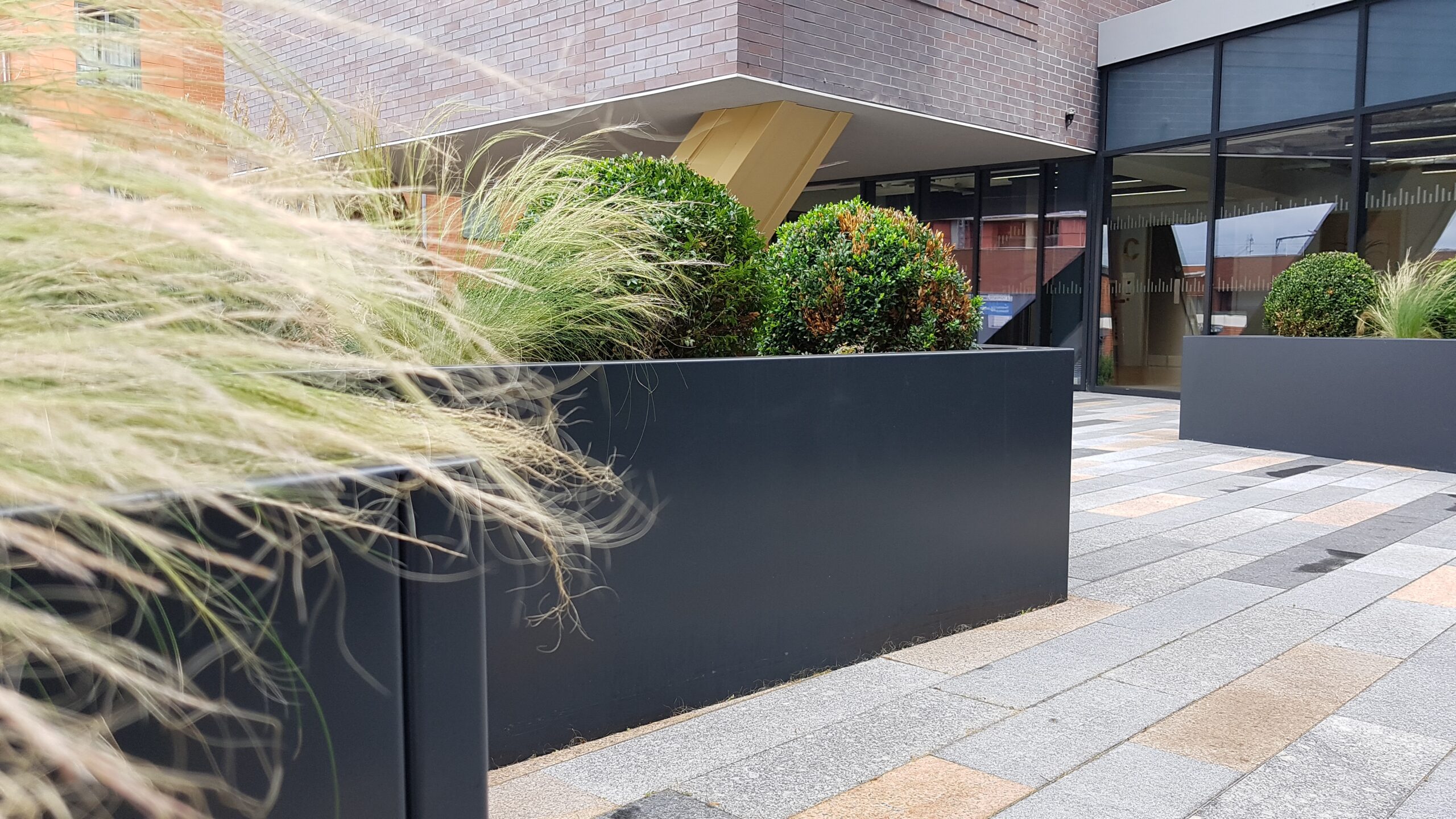 The Trilogy development in Ellesmere Street, Manchester, now benefits from landscaped communal grounds which were created with the residents’ different needs in mind, combining more formal seating with benches along the paved walkway which opens into a lawned area dotted with playful seating stones for informal get-togethers. Generously stocked planters frame the gardens, creating a peaceful space as an antidote to fast urban life, and inviting social interaction.