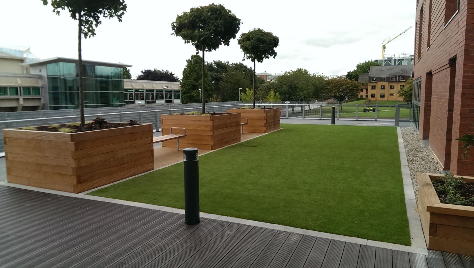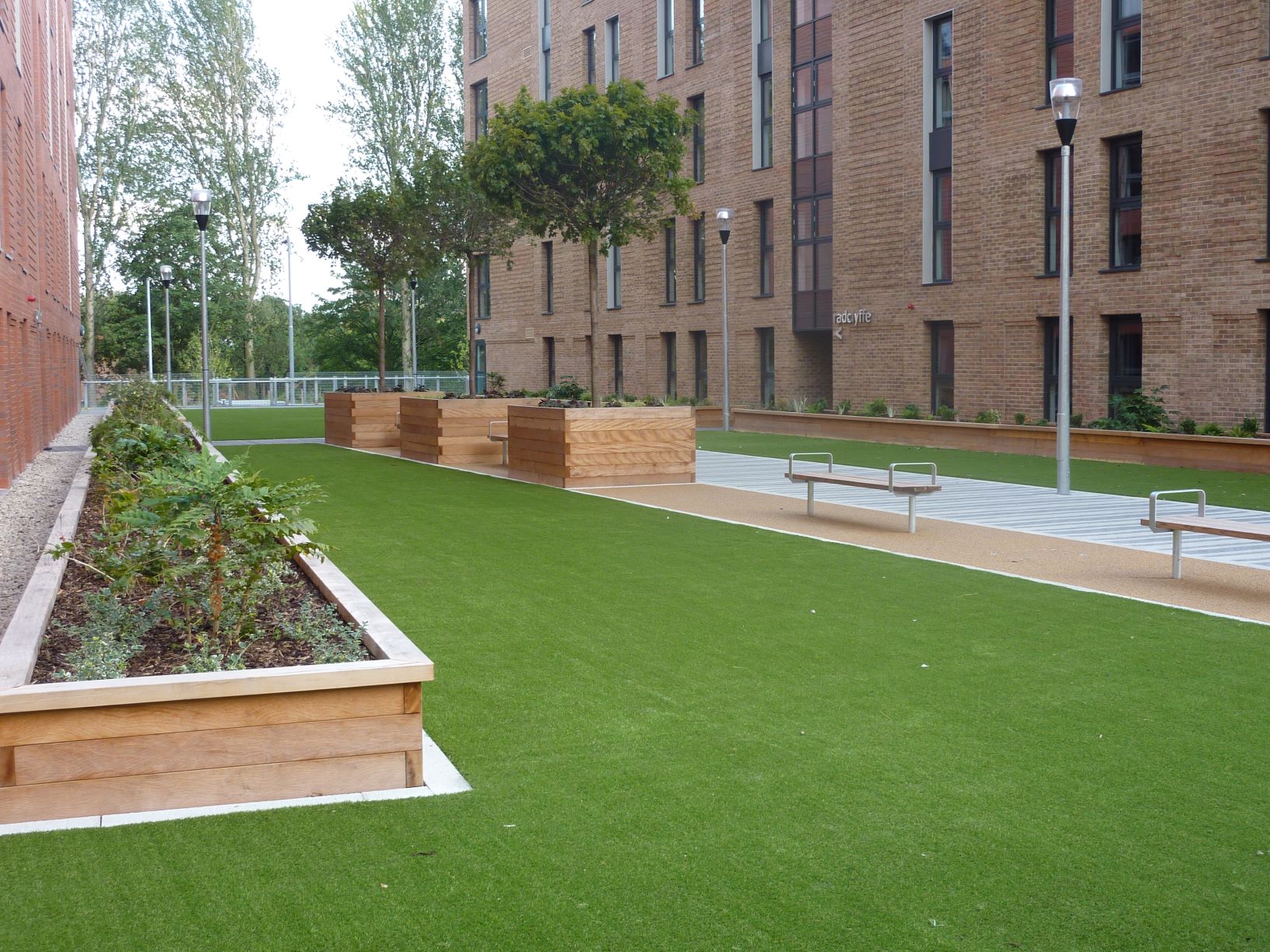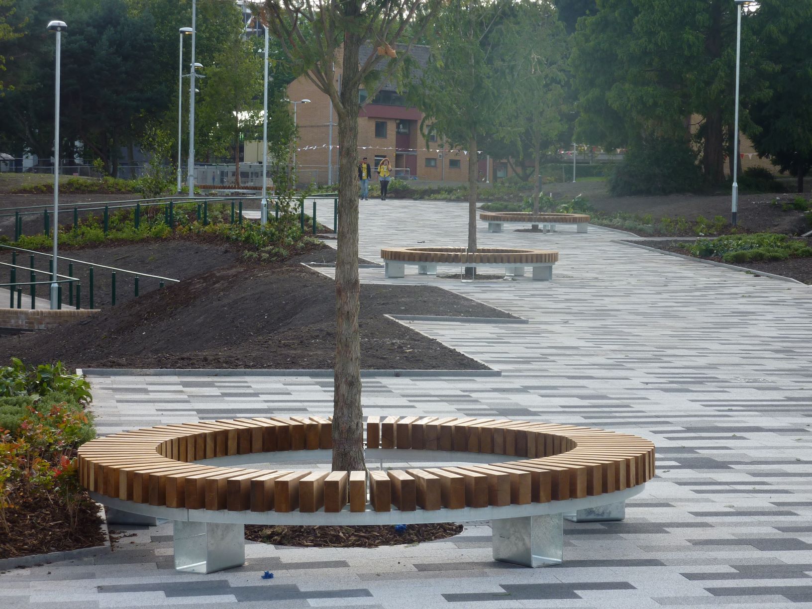 We were asked by Salford University to help create a campus that provides students with a natural and relaxing space to recharge, as well as encourage socialising. The bespoke street furniture scheme uses informal seating in timber and steel and timber planters of different sizes filled with plants and trees for maximum impact.