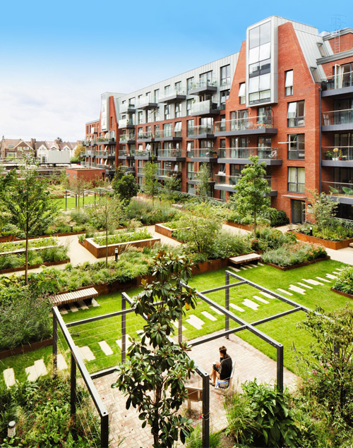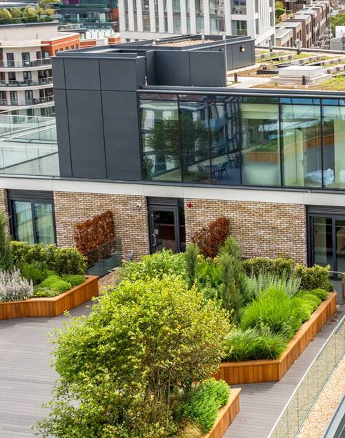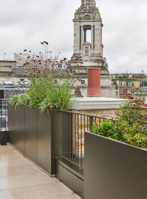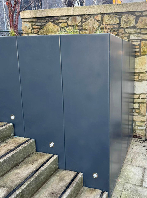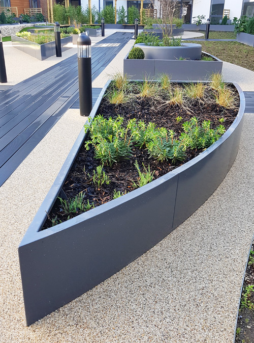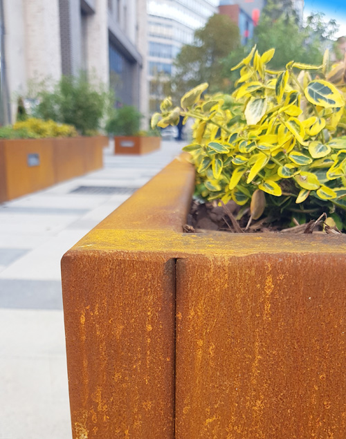 Move the orange button to see the transformation (Steel planters, Rivergate, Bristol)